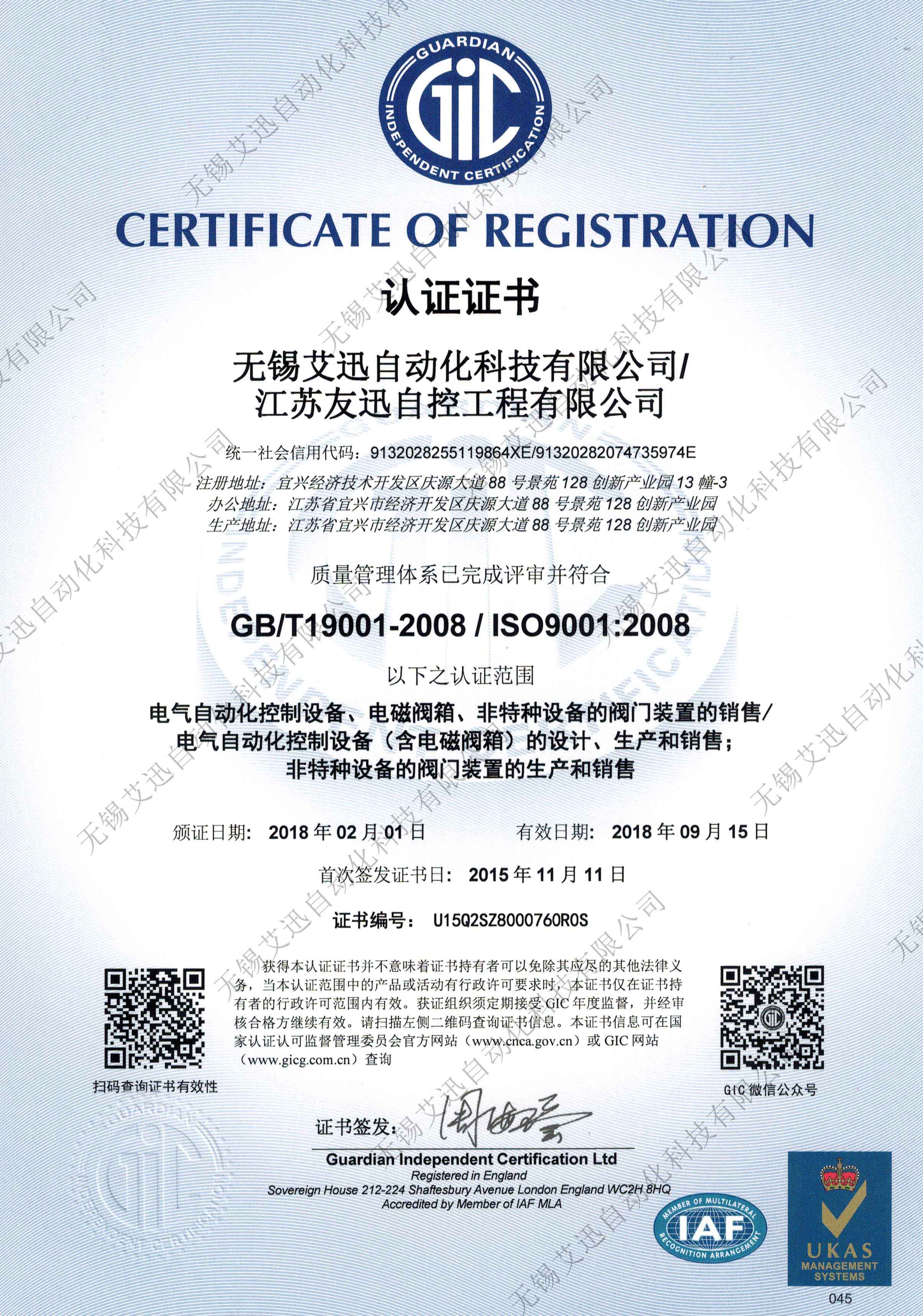 艾迅ISO9001认证证书-中文